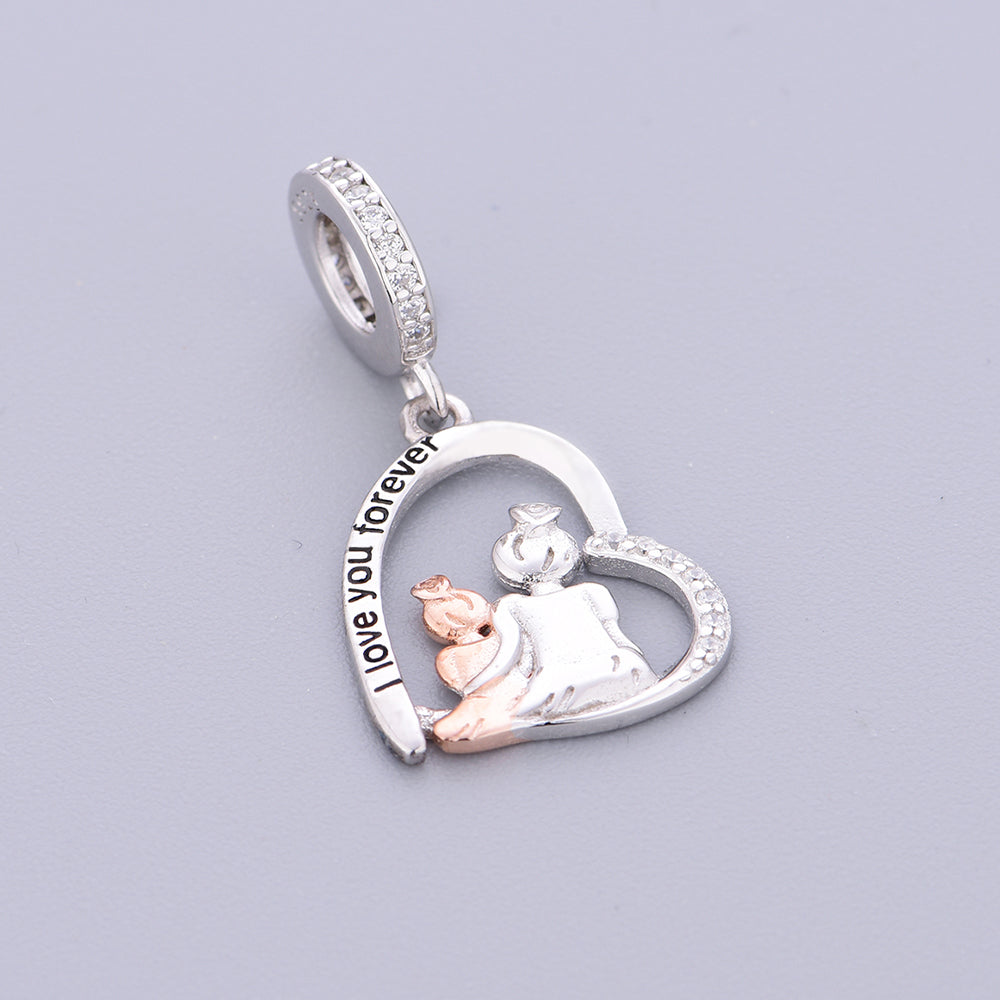 A warm 925 sterling silver, bead pendant, Mom and daughter cuddling together  charms , Color separation electroplating, inlaid zircon, silver jewelry, daily wear, jewelry for women, birthday gifts