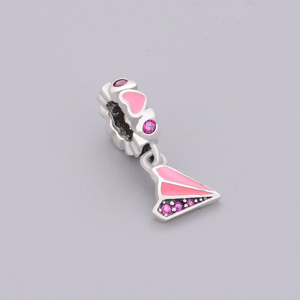 - Design: A ruffled, cupcake-inspired bail adorned with glossy pink enamel hearts and vibrant pink cubic zirconia, paired with a party hat pendant detailed with gradient pink enamel and a pavé of sparkling pink crystals.