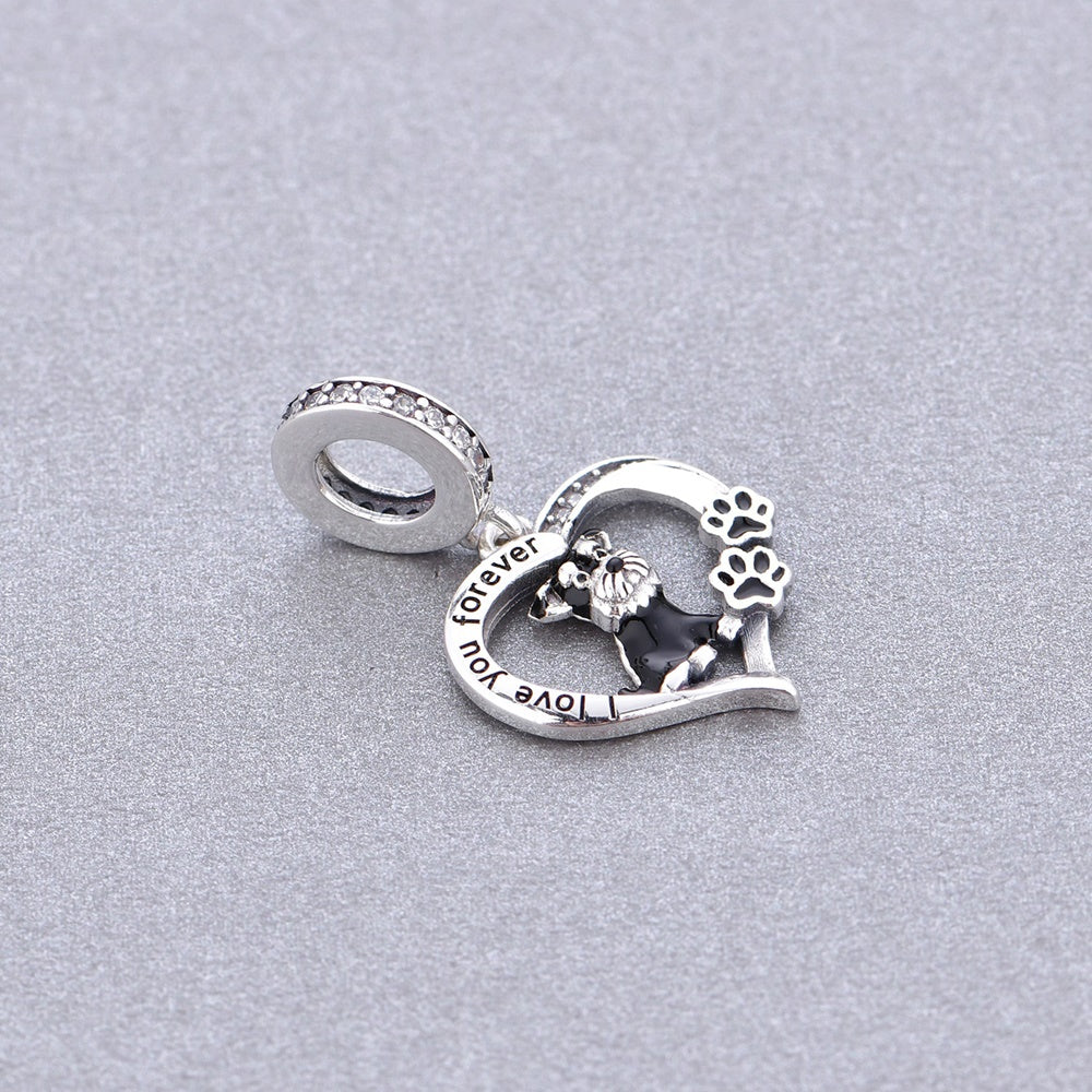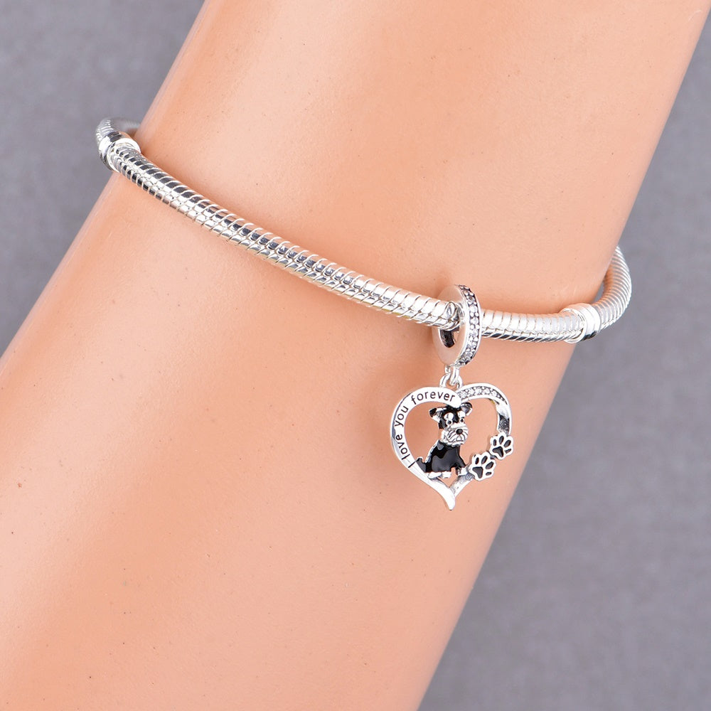 A beautifully crafted 925 sterling silver pendant with beaded embellishments, Schnauzer Love String Decoration, Inlaid zircon, silver jewelry, daily wear, jewelry for women, birthday gifts