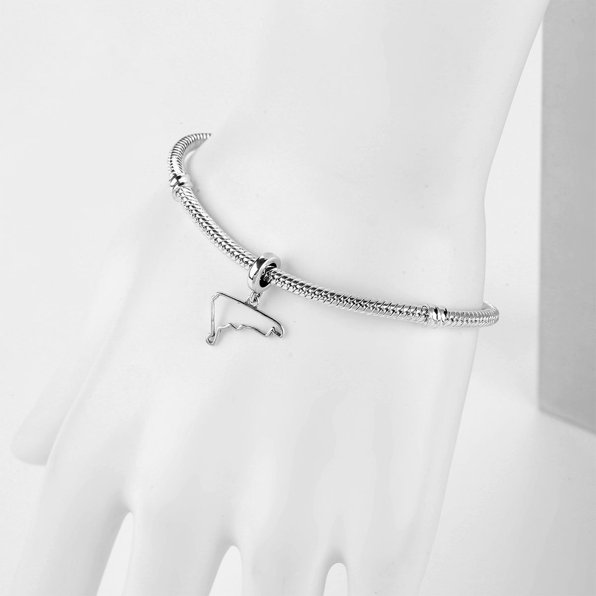 • Design: The charm features a sleek, openwork outline of South Carolina, capturing the state’s distinctive coastal and inland contours. The polished, smooth bail ensures it slides effortlessly onto any bracelet or necklace.